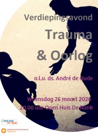 Verdiepingsavond Trauma en Oorlog Op woensdagavond 25 maart wordt er een verdiepingsavond gehouden in De Rank met als thema Trauma en Oorlog.