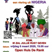 Namens het IKO nodigen wij u van harte uit voor de viering van oecumenische Wereldgebedsdag 2026. Elk jaar wordt in een ander land de viering voorbereid. We laten ons dit jaar inspireren door het geloof van christen vrouwen uit Nigeria. Thema: "kom, ik zal jullie rust geven"